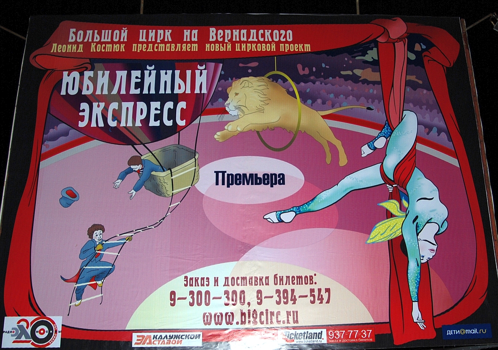 Gestern stand der Große Moskauer Staatszirkus auf dem Programm. Ich war sehr beeindruckt von dieser großartigen Vorstellung. Trapezartistik und verschwundene Jungfrauen, Löwen und Dressurhunde, stets begleitet von einer zehnköpfigen Band, ein echter Zirkus eben. Ein dreistündiges Spektakel für über 3000 Zuschauer, davon die meisten Erwachsene, nur der Löwe, der durch den brennenden Reifen springt, hat gefehlt – Stefan schreibt wohl heute nacht im Zug dazu einen separaten Beitrag.