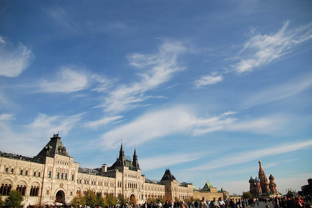 Moskau unsicher machen, wobei wir uns an gut ausgetretene Touristenpfade hielten: mit der Metro in die Stadt und roten Platz, Kreml, GUM anschauen. Noch nicht recht wissend, was den Abend über machen, stolperten wir über