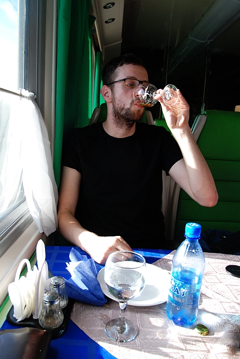 kurieren, Stefan trinkt Bier mit unserem russischen Mitreisenden.