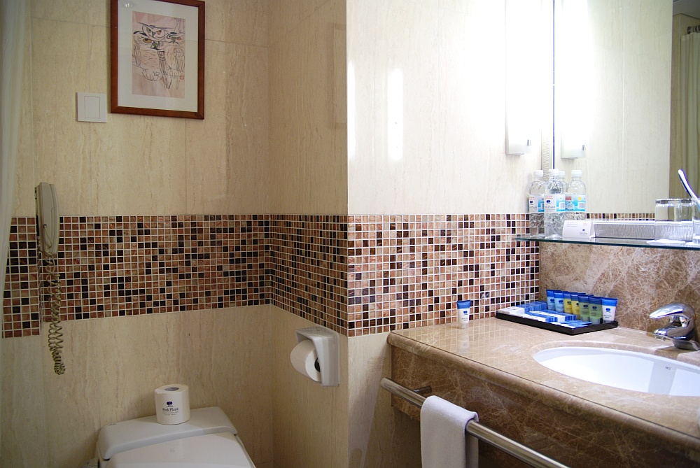 Hotel entpuppt sich als Vier-Sterne-Palais in Universitätsnähe. Für die kommenden drei Nächte haben wir eine imposante Trockenzelle mit hübsch gefliester Naßzelle. Es gibt allen Schnickschnack. Das Bild von drei Eulen